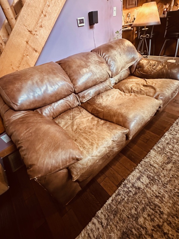 Free leather couch, 2 arm chairs, 2 ottomans. All in good shape, except a small tear in the left armrest of the couch. Arrange pickup in Shawnee will give address at that time.