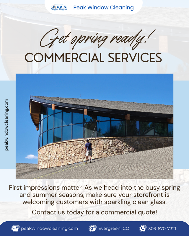 Peak Window Cleaning provides reliable and professional commercial window cleaning services for storefronts, offices, restaurants, property managers, and commercial buildings throughout Evergreen and surrounding mountain communities.