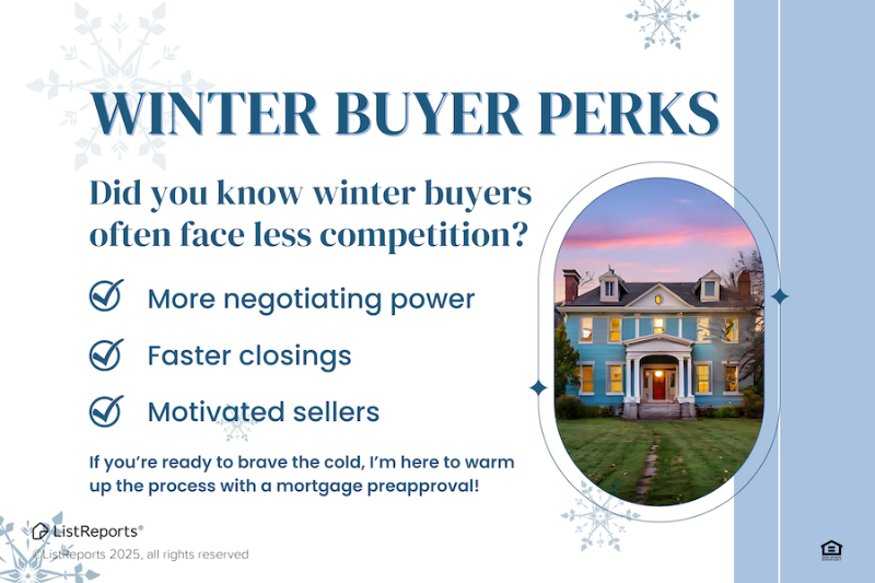 Winter may be chilly, but the perks for homebuyers are hot! With fewer competing offers and motivated sellers, it’s a great time to find your dream home. Plus, faster closings mean you’ll be settling in before spring blooms. Ready to explore your options? Let’s find you the perfect place — I’ll guide you every step of the way!