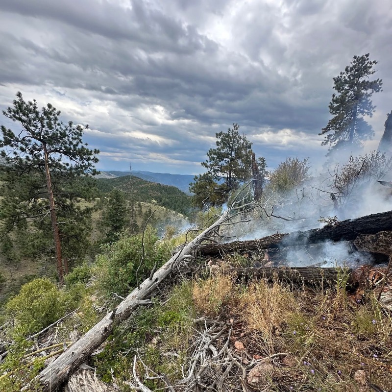 Today, firefighters from @elkcreekfire, Conifer Fire, @jeffcoopenspace, @U.S. Forest Service - PSICC National Forest, and @jeffcosheriffco continued suppressing the fire, achieving 100% containment in the early afternoon, prior to more storms moving in.
