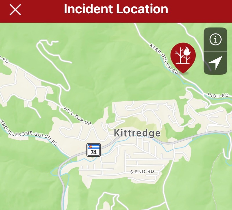 Evergreen Fire is en route to a reported vegetation fire about 40 square feet in size with active flames in the 2900 block of Kerr Gulch Rd in Kittredge.