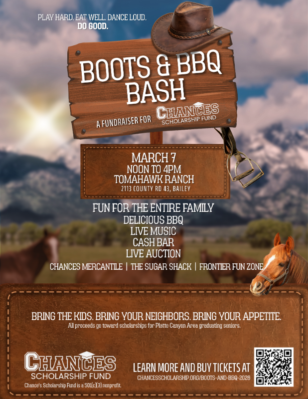 It’s a full afternoon of fun for all ages, and every dollar raised goes directly toward scholarships for local Platte Canyon high school seniors, supporting college, trade school, and career pathways.