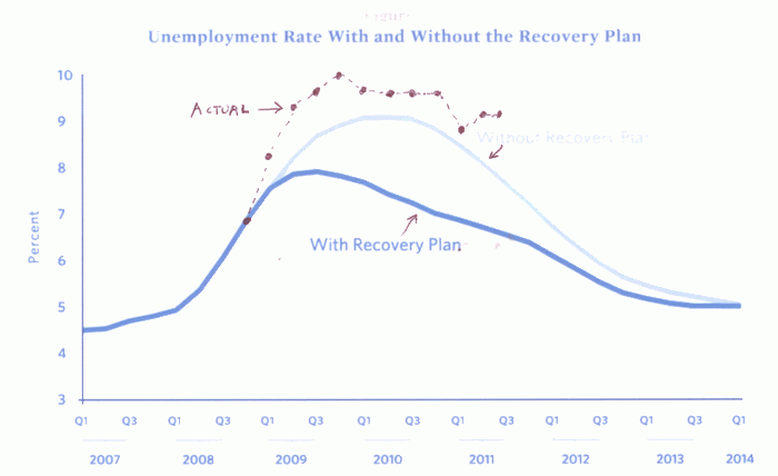By the way, below is a graph showing what the Obama administration projected the Stimulus would accomplish. The graph came from this report on page 5...