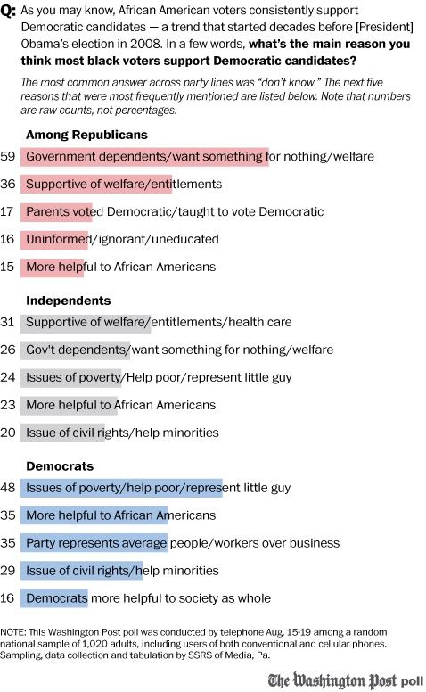 Perhaps it is there attitude of condescension toward minorities. A Washington Post survey found that: