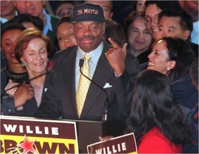 “Six months ago, it would have been just a chuckle among us locals,” adds Brown, referring to his affair with Harris. Let’s recall Brown was married and having an affair with the much younger Harris during his run for mayor of San Francisco. When he won, Harris was on stage right next to him and gave him a hat that said “Da Mayor.” His wife was off to the side.