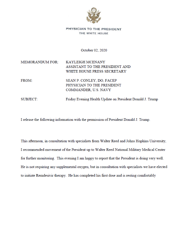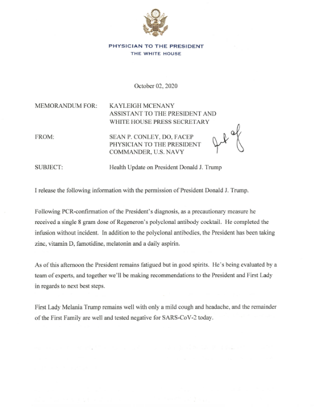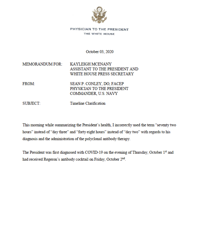 Let's examine the spin you put on the notification from Sean Conley, D.O., the President's physician.