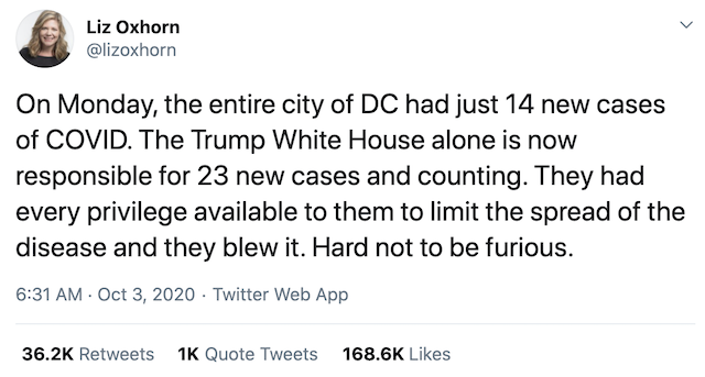 It is not a hoax and I fervently hope he, and all those who've now been diagnosed positive following the super-spreader event announcing the Supreme Court nominee, recover fully. Was it reckless of the White House staff to hold unsafe events that violated CDC guidelines, and to have the fundraising banquet Thursday night when Hope Hicks had already tested positive? Absolutely. But, given how this administration has treated this virus, downplaying its seriousness, refusing to wear masks, contradicting scientists on its COVID Task Force, etc it's not surprising in the least. I simply hope that everyone survives who was exposed/becomes positive, and I hope this administration starts taking this virus more seriously.