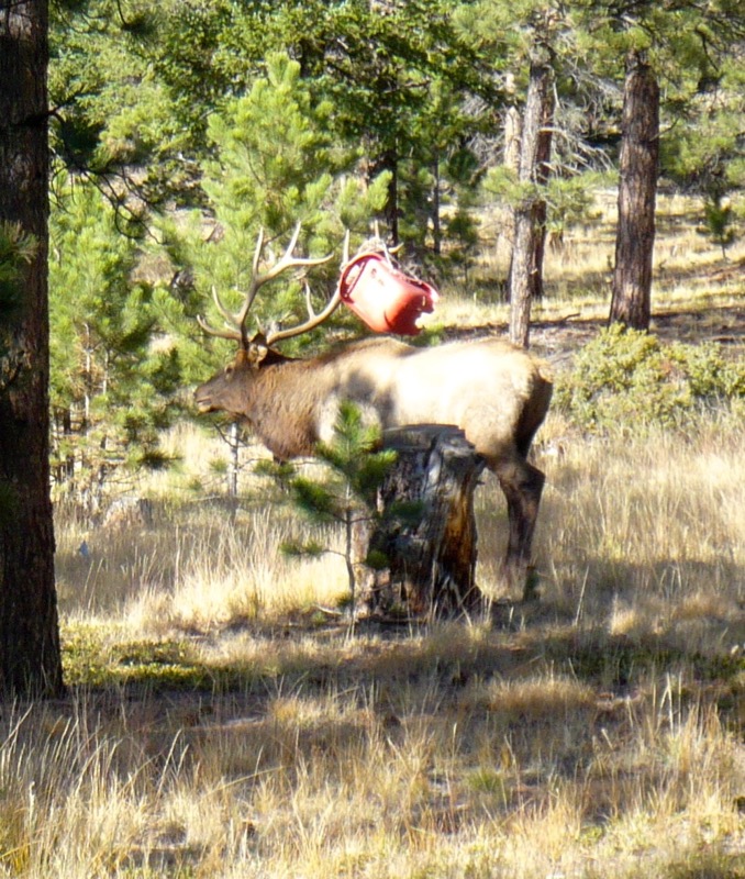 The Elk lost his bling! That tire made him stand out to the ladies! Now he has no tire and no antlers to show off either! Luckily the Rut is over. (Just joking, I am sure that bull is a happy guy now. )