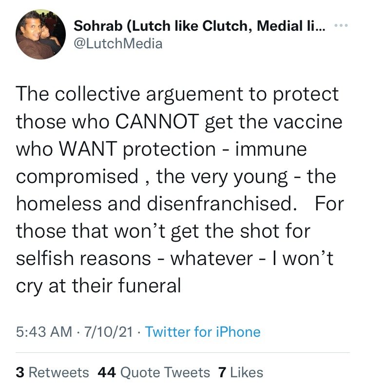 Over the summer Dr. Sohrab Lutchmedial attacked “selfish” people who choose not to take the Covid jab.