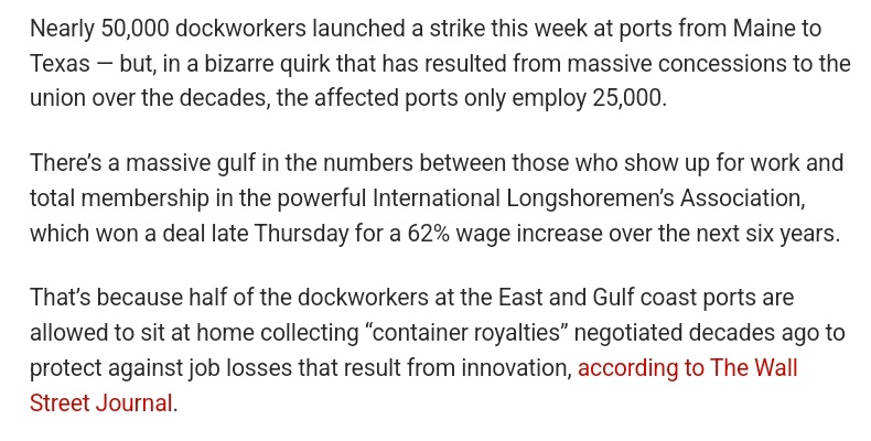 The union might be pricing themselves out of a job. Moving containers can be done by robot cranes. And robots work 24/7. No overtime, no holiday pay, and no benefits.