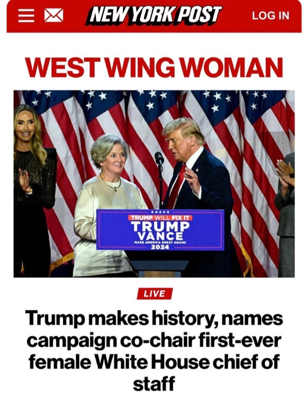 Trump appoints the first woman White House Chief of Staff.