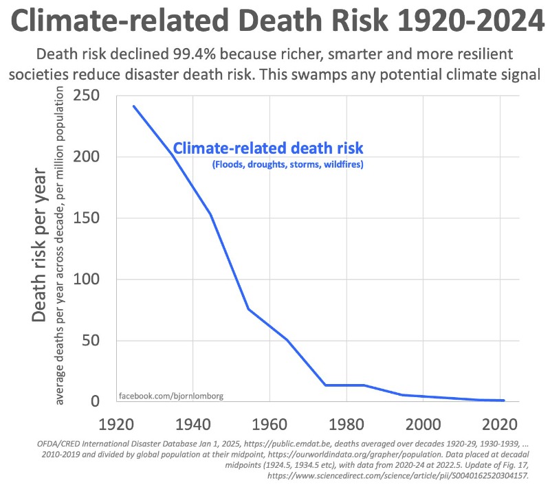 Contrary to the gloom and doom enviro-nuts like Greta. Wealthy societies do a better job protecting their citizens from dying due to climate change than poor, lo-tech nations.