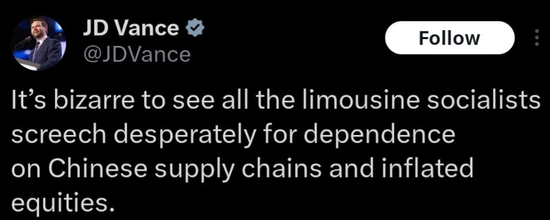 THEN ALL OF THE CEO'S AND BILLIONAIRES IN THIS NATION R WRONG ALSO....THEY R PISSED AT THE WHIPLASH /MAYBE I WILL, MAYBE I WON'T WANTON WORDS OF THE CZAR.....MARKETS AND ECONOMIES DO NOT LIKE UNCERTAINTY AND THE GLOBAL LEADER OF CHINA IS NOT GOING TO BACK DOWN....OTHERS WILL ATTEMPT TO STRIKE FAIR DEALS,BUT THE CZAR IS NOT INTERESTED IN FAIR, HE THINKS TARIFFS WILL RESTORE AMERICA, IT WORKED IN THE 50'S AND EARLY 60'S.....WE R NOT IN THOSE DATED TIMES.....BUT TRUMP HAS A STUBBORN STANCE OF I AND ONLY I CAN FIX IT...........WAIT AND WATCH....AGAIN THOSE WORDS HAVE PROVEN TO BE INTERESTING.......UNICORN UNIVERSE OF MAGA IS UNINFORMED AND WILL FOLLOW THE CZAR OVER THE CLIFF.....LEMMINGS WOULD BE A NOUN TO NAME IT.