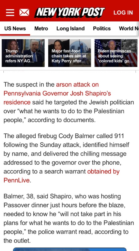 Jewish Governor Shapiro and his family weren't harmed and are living elsewhere until the damage is repaired.