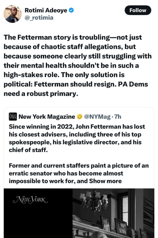 Ironically Fetterman is one of the most popular Senators in office right now. Both parties voters like him.