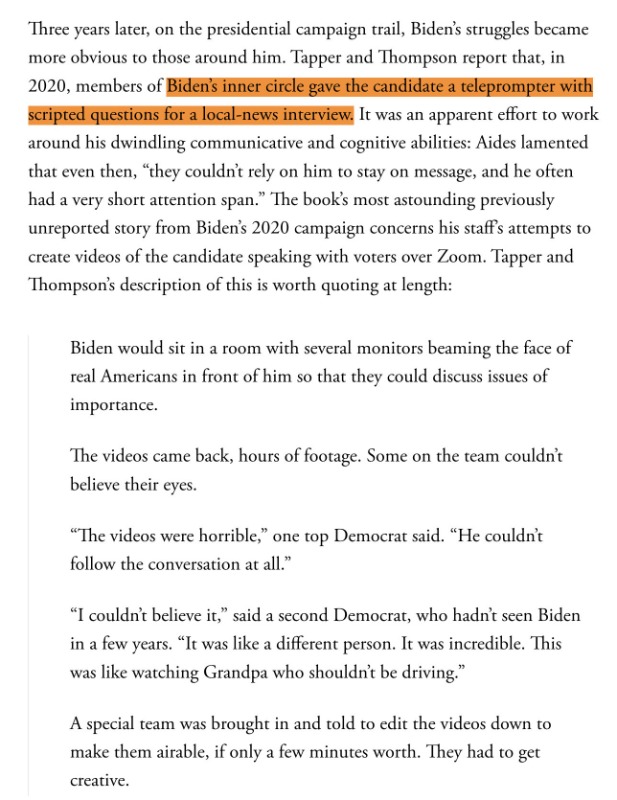 Looks like the White House inner staff tried to hide how bad Biden was impaired mentally. Even to the point that they would hide him from his own. Staff. Much like what Woodrow Wilson's wife did to hide his stroke.