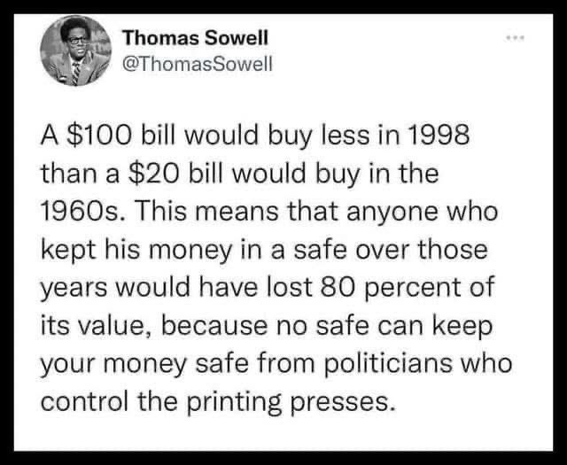 One of the things that kept inflation low was that the value of the USD was tied to an ounce of gold by federal statute. If you look at the Dow during the decade of the 60's and then look at it again in the 70's, after the restriction was lifted and the value of the USD was tied to debt instruments instead of precious metals, you'll see where the seeds for our situation today were first planted.