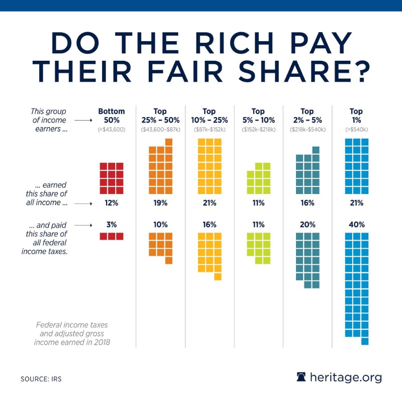 The Rich already pay their fair share, but that isn't enough for The Left, government still spends more than they take in and they advocate to increase taxes and fees even more.