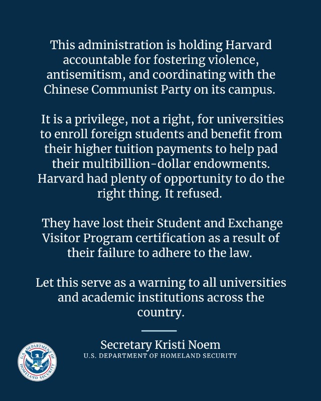 Harvard for Americans again! Instead of Chinese sons of the Politburro and European and Arabic royalty.