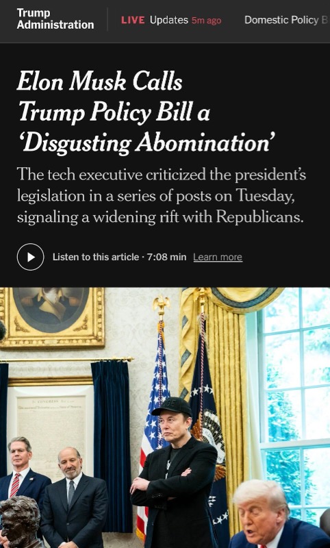 Trump and Musk disagree on one very important thing, Trump's Big Beautiful Bill. Elon and Rand Paul and a few fiscally conservative Senators like Chip Roy want decreased spending.