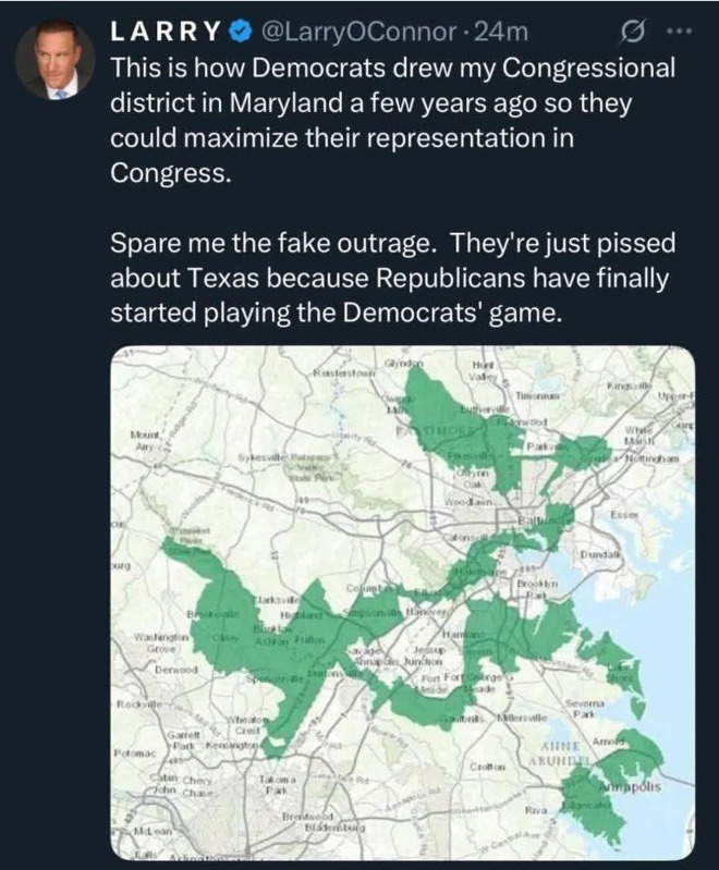 The truth about gerrymandering? The only time either party has a problem with it is when they aren't the party drawing the lines. The current effort in Texas actually eliminates much of the current gerrymandering that was undertaken to ensure that Democrats didn't have to compete for the seats. The current Texas map is filled with numerous "coalition districts", which is code for an intentionally gerrymandered district to ensure that a specific racial or ethnic group, or a combination of them, hold a majority of the eligible voters in that district. The map under consideration right now eliminates "coalition districts", and that's the problem that Democrats have with the effort.