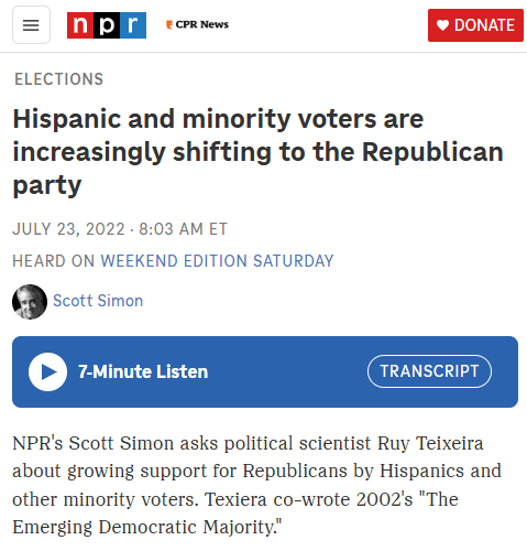 That and they haven’t seen a policy that worked since Clinton was president. Flooding the country with illegals while we have a housing, education, and healthcare crisis doesn’t give normal people a lot of confidence in that party.
