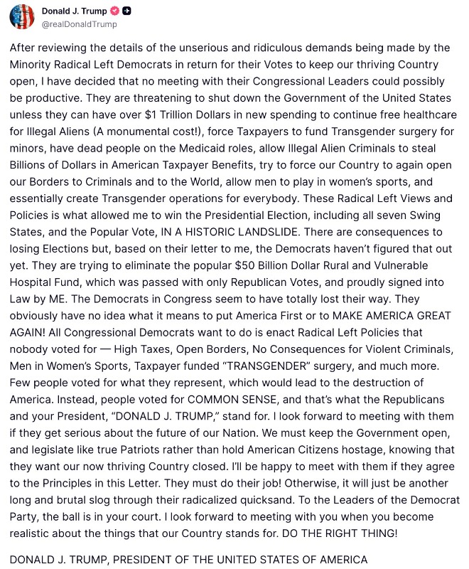 Trump: Ready To Shut Down The Government