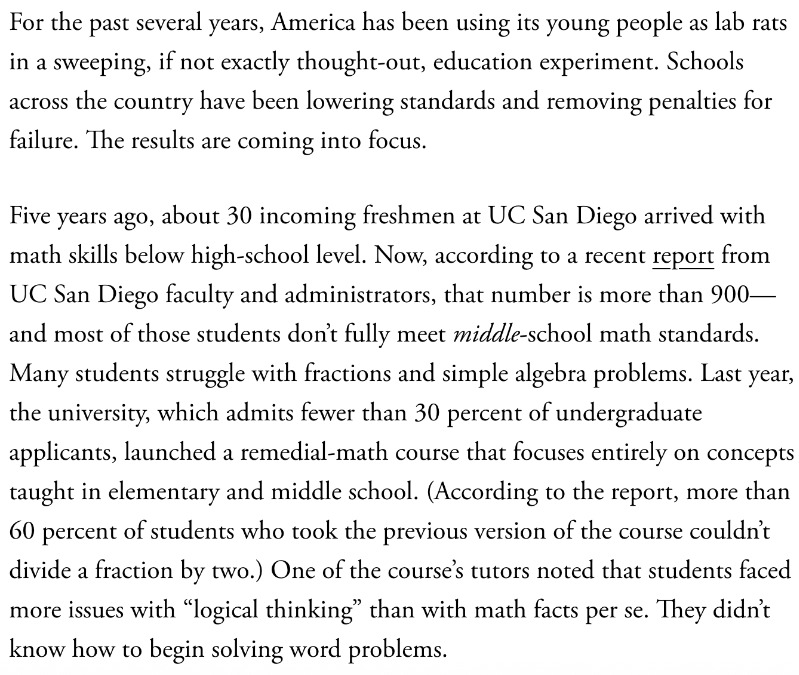 So now we have American kids accepted into the most prestigious schools but they don't know Algebra, Physics, or even Geometry. Sad.