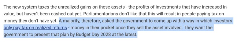 In this plan, if you bought Apple stock at $50 a share and it is now $1,000 a share, you will owe $300 in taxes. So you now have to sell the stock to pay your tax. People all over the Netherlands will have to do the same, stock falls to $500 a share. So now you only clear $100.