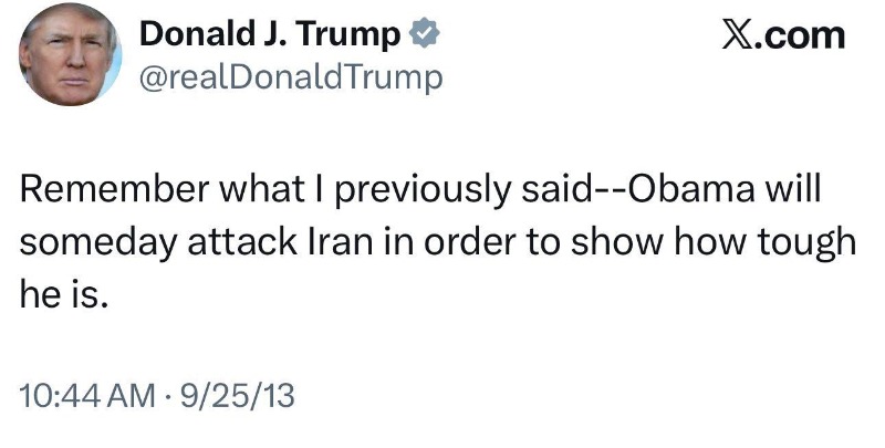 Imagine going back in a time machine and telling this group that the "Apprentice" show host had bombed Iran and taken out their leadership.