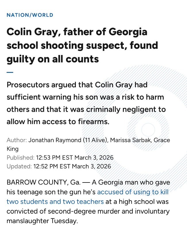 If this father can be charged with 2nd degree murder for giving his son a gun, we should charge governors who give commercial driving licenses to unqualified candidates.