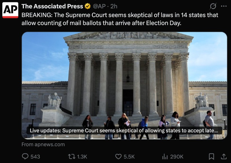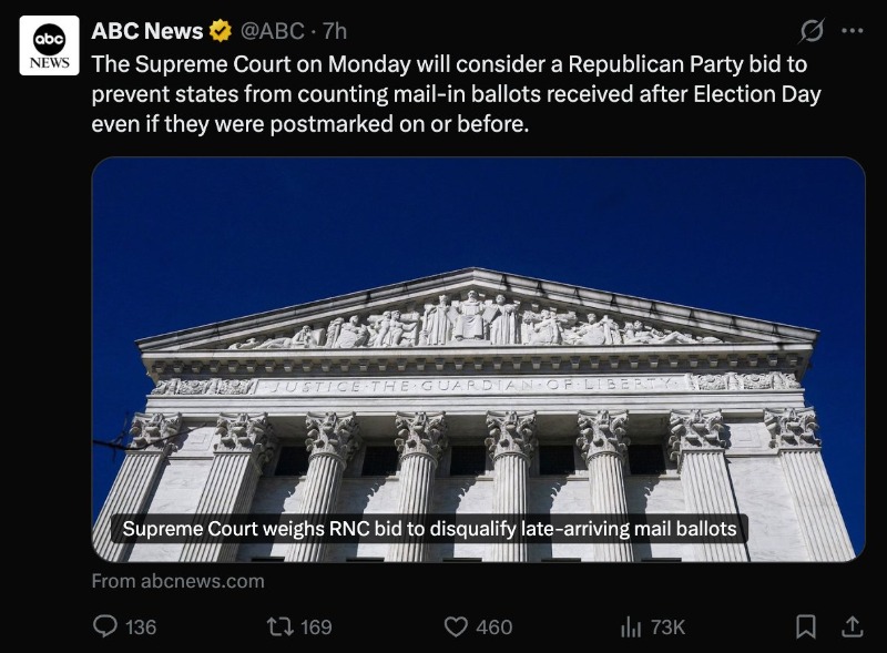 Supreme Court Case: Late Arriving Mail Ballots